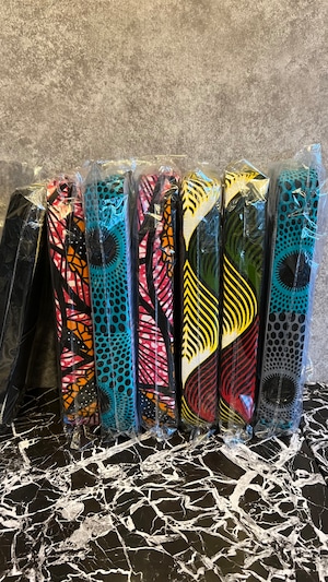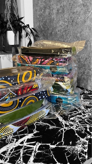 アフリカで仕入れた個性豊かな生地をデザインに取り入れ、一つひとつ表情が異なり、どれも世界でたったひとつの組み合わせです。